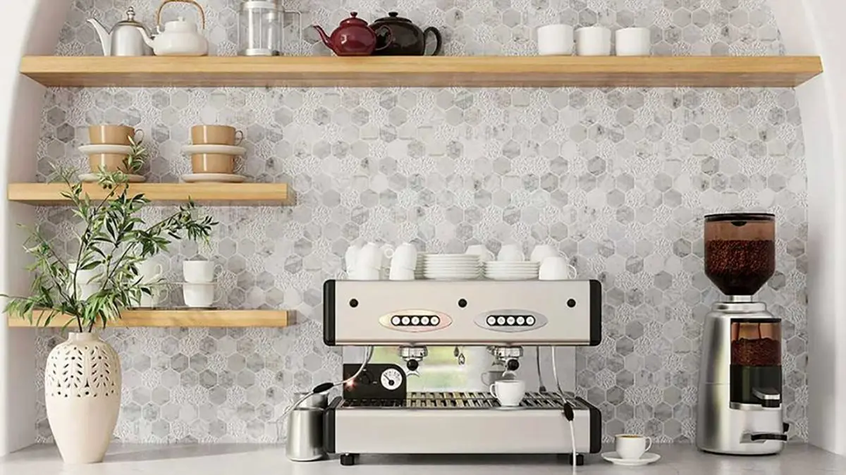 با ایجاد تغییرات ظاهری و متمایز کردن بخشی از آشپزخانه، یکی از کابینتهایتان را به کانتر کافی بار تبدیل کنید تا جایی که تبدیل به فضایی مخصوص به قهوه و تجهیزات آن شود.