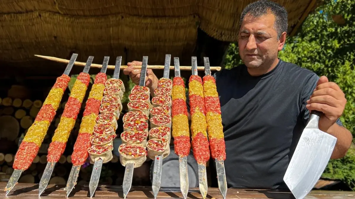 فیلم/ نحوه تهیه کباب کوبیده مرغ و گوشت به روش خلاقانه آشپز مشهور آذربایجانی