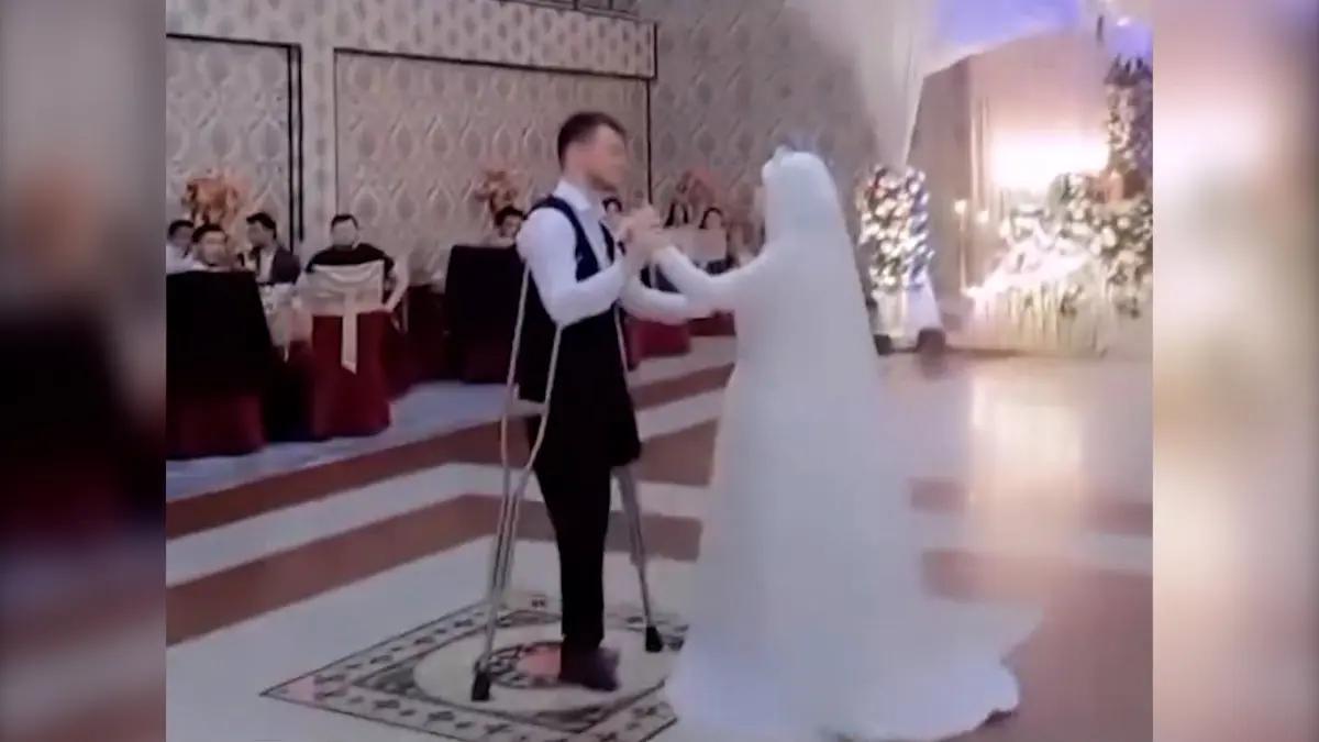 اخیرا فیلمی از مراسم ازدواج عروس و دامادی در فضای مجازی منتشر شد که در داماد از ناحیه پا دچار حادثه شه است اما همچنان عروس با عشقش با این مرد ازدواج می کند.