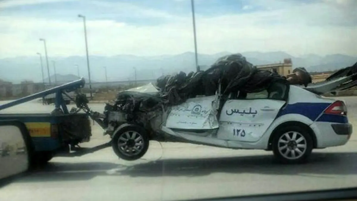 رکنا: عکسی در شبکه های مجازی دست به دست شد و نشان از تصادف وحشتناک یک ماشین پلیس می داد که با جرثقیل در حال حمل آن هستند.