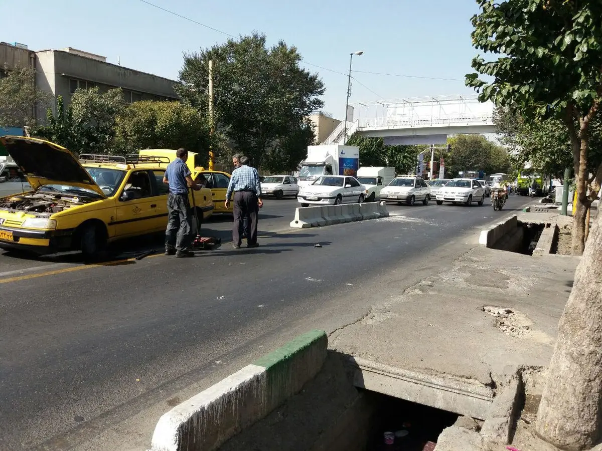 برخورد تاکسی با جدول غیر استاندارد در خیابان شوش + عکس