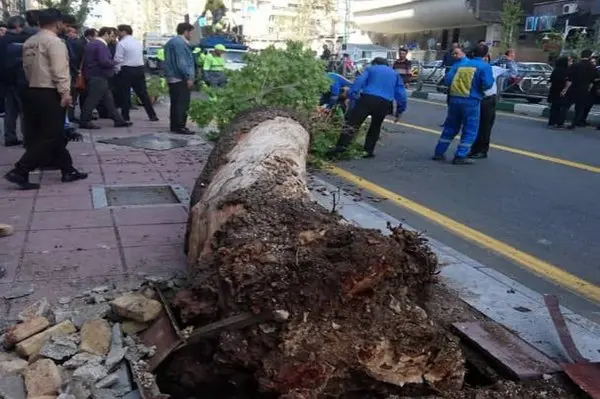 رئیس اداره فضای سبز شهرداری منطقه 6 تهران درباره درختی که دیروز سقوط کرد گفت: این چنار درختی با بُن(قطر) بالای 150 بود که با بادی مختصر خود به خود سقوط کرد.