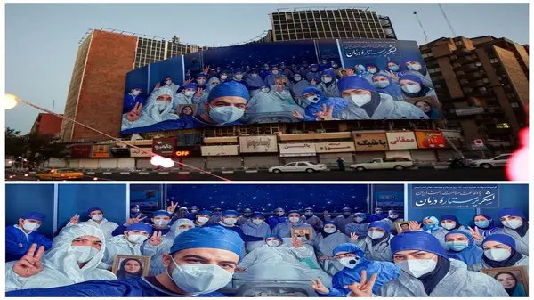 تغییر تصویر دیوارنگاره میدان ولیعصر به مناسبت روز پرستار