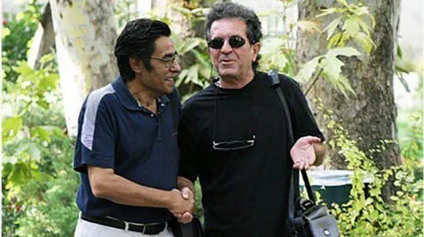 داریوش مهرجویی دست بر گردن خسرو شکیبایی انداخته و شکیبایی دستش را به دور کمر مهرجویی حلقه کرده است. این تک تصویر، روایتی یک صدم ثانیهای، از رفاقت است؛ رفاقتی که حالا در دنیای دیگر ادامه پیدا خواهد کرد.