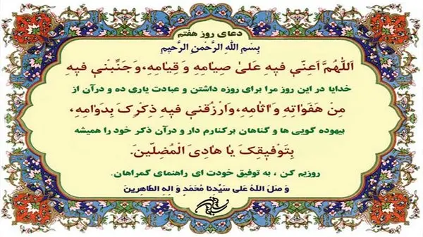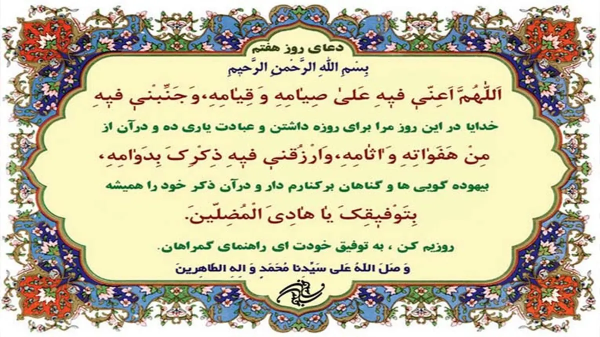 خدایا یارى کن مرا در این روز بر روزه گرفتن وعبـادت وبرکنارم دار در آن از بیهودگى وگناهان وروزیم کن در آن یادت را براى همیشه به توفیق خودت اى راهنماى گمراهان.برای ورود به کانال تلگرام ما کلیک کنید.