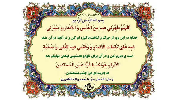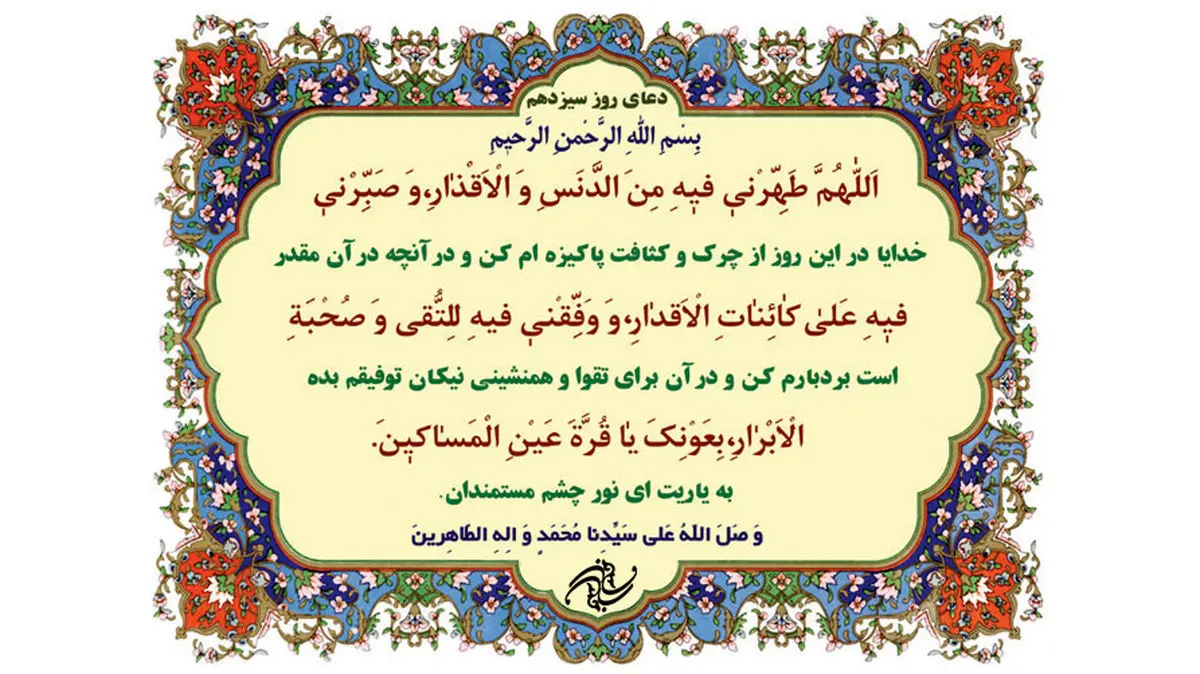 متن و ترجمه دعای روز سیزدهم ماه رمضان به شرح زیر است: