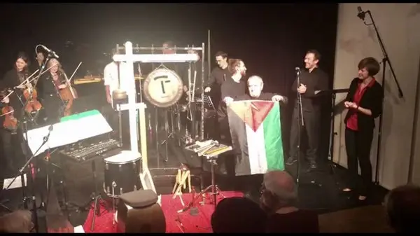 رکنا: آهنگساز ایرانی مقیم اتریش در پایان اجرای کنسرت موسیقی تحت عنوان «واقعیت یک شایعه معتبر» که در یکی از سالن های شهر وین برگزار شد در یک اقدام غافلگیر کننده پرچم فلسطین را در حمایت از مردم مظلوم این کشور به نمایش گذاشت.