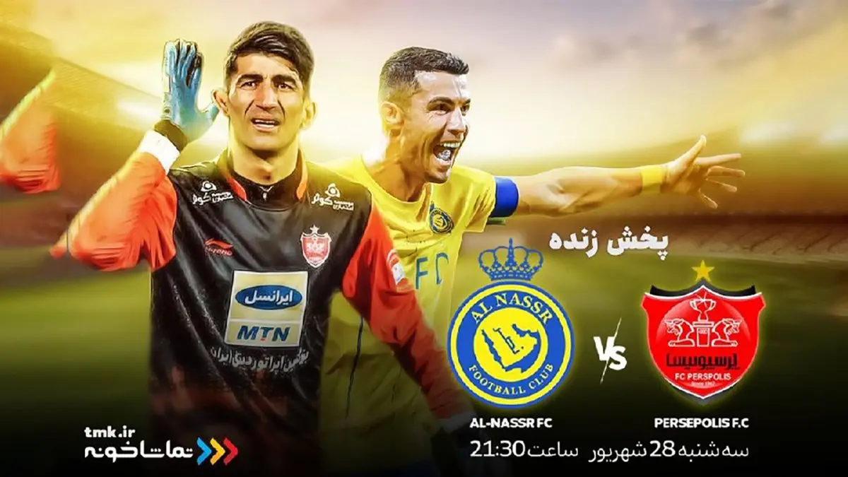 همزمان با بازی فوتبال دو تیم پرسپولیس ایران و النصر عربستان در ساعت ۲۱:۳۰ سه شنبه ۲۸ شهریورماه در ورزشگاه آزادی، این بازی به صورت زنده و آنلاین از پلتفرم «تماشاخونه» به آدرس www.tmk.ir پخش خواهد شد.