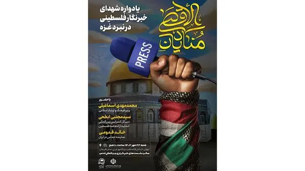 رکنا سیاسی: مراسم «منادیان الاقصی» یادواره شهدای خبرنگار فلسطینی در نبرد اخیر غزه، ساعت ۱۰ صبح روز شنبه ۲۲ مهرماه با حضور وزیر فرهنگ و ارشاد اسلامی و شماری از نمایندگان جنبش مقاومت فلسطین و سفرای کشورهای اسلامی در محل خبرگزاری قدس برگزار میشود.