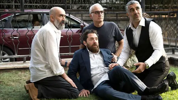 کاری که صحت در «صبحانه با زرافهها» کرده دقیقا همین است. سه دوست با بازیهای هوتن شکیبا، بهرام رادان و بیژن بنفشهخواه به عروسی دوست دیگرشان با بازی پژمان جمشیدی میروند و در وسطِ عروسی، سلسله اتفاقاتی ناگوار، شرایط پیچیدهای را به هم میزند. در این میان آنها با دکتری سرخوش و عیاش با بازی هادی حجازیفر آشنا میشوند تا گروهشان تکمیل شود.