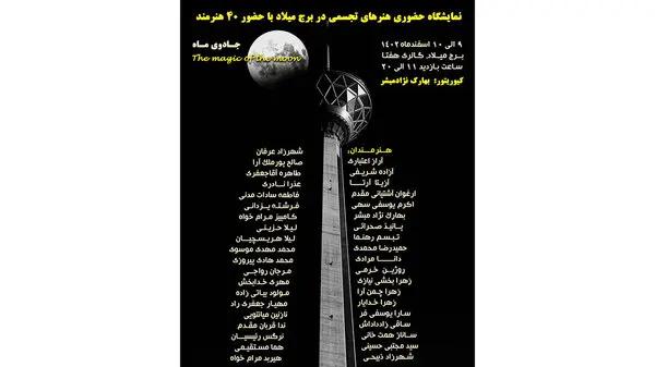 رکنا: نمایشگاه حضوری هنرهای تجسمی و صنایع دستی با عنوان جادوی ماه (The magic of the moon) با حضور هنرمندان و علاقه مندان به این رشته امروز چهارشنبه 9 اسفند ماه در برج میلاد برگزار می شود.