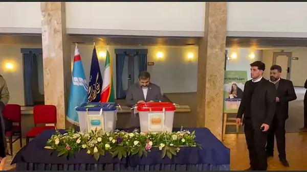 لحظه رای انداختن وزیر فرهنگ در صندوق اخذ رای تالار وحدت + فیلم