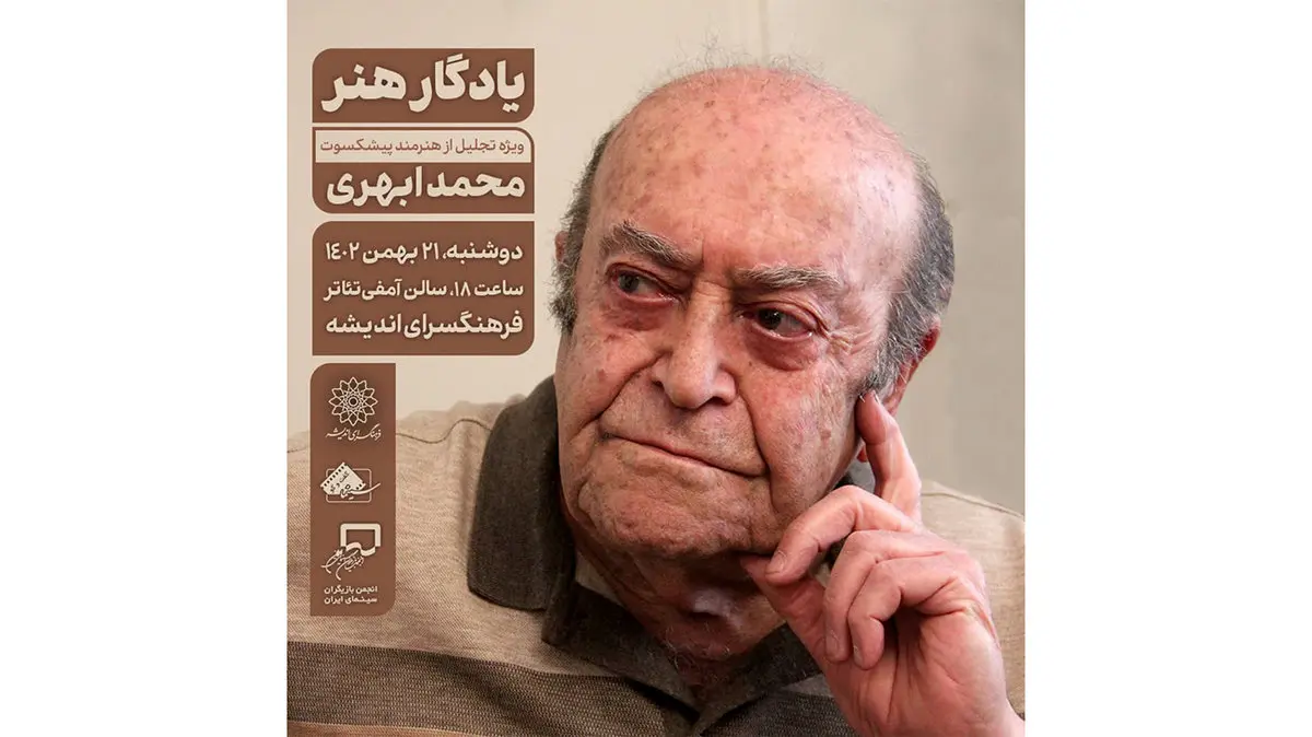 رکنا: در نخستین آیین «یادگار هنر» از بیش از نیم قرن فعالیت هنری «محمد ابهری»، بازیگر پیشکسوت سینما، تلویزیون و تئاتر در فرهنگسرای اندیشه تجلیل و تقدیر بهعمل میآید.