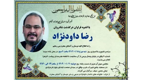 اعلام جزئیات برگزاری مراسم یادبود و تشییع رضا داودنژاد