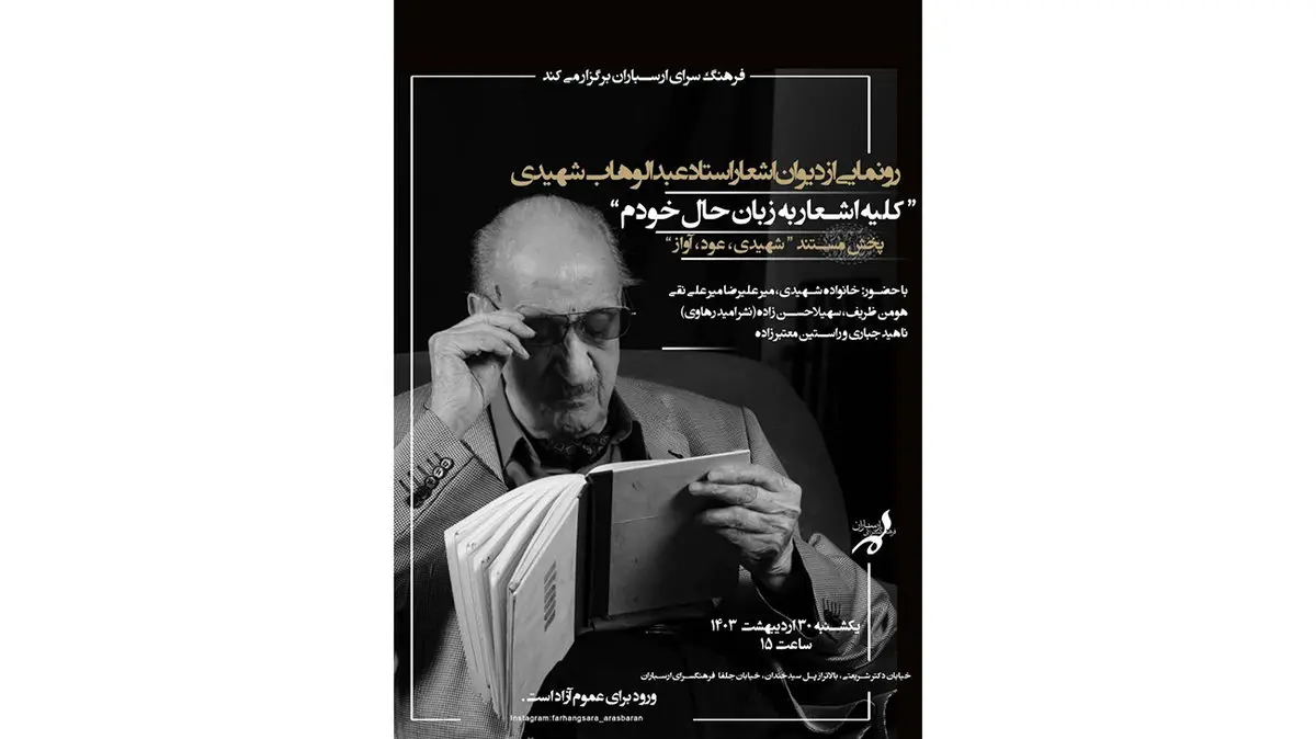 دیوان اشعار استاد عبدالوهاب شهیدی در فرهنگسرای ارسباران رونمایی میشود
