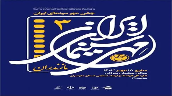 به گزارش رکنا از مازندران؛ سومین جشن مهر سینمای ایران مازندران با حضور آهنگر مدیرکل فرهنگ و ارشاد اسلامی مازندران، معصومی گرجی رییس حوزه هنری استان و جمعی از مدیران، پیشکسوتان، فعالان و هنرمندان عرصه سینمای استان مازندران، عصر روز گذشته در سالن سلمان هراتی مجتمع فرهنگی هنری اداره کل فرهنگ و ارشاد اسلامی برگزار شد و از منتخبان و برگزیدگان در ۱۲ بخش با اهدا تندیس ویژه، لوح تقدیر و هدایای نقدی تقدیر شد.