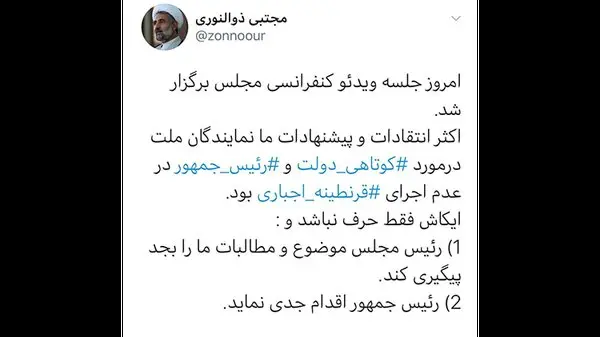 در جلسه امروز ویدئو کنفرانسی مجلس: