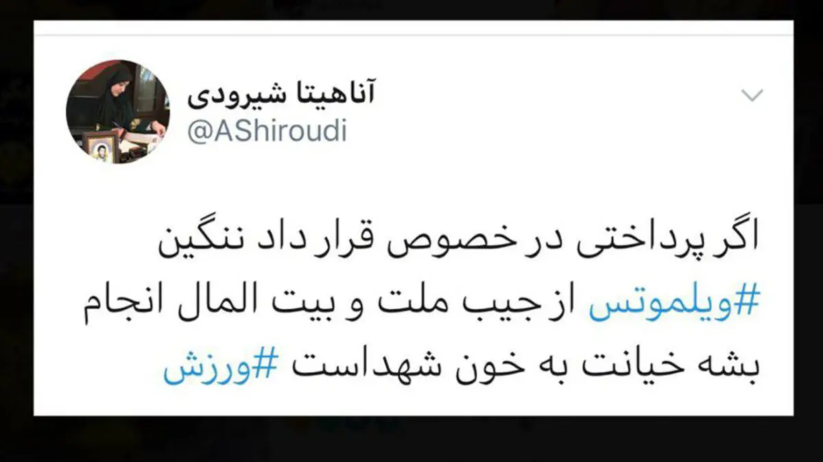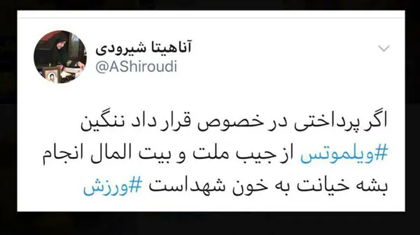 آناهیتا شیرودی نوشته است :" اگر پرداختی در خصوص قرارداد ننگین از جیب ملت و بیت المال انجام بشه خیانت به خون شهدا ست."