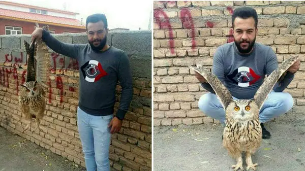 کار زیبای مرد دماوندی با جغد شاخ دار+ عکس