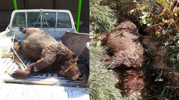 مرگ یک قلاده خرس قهوه ای با اصابت دو گلوله / در فیروزکوه کشته شد + فیلم