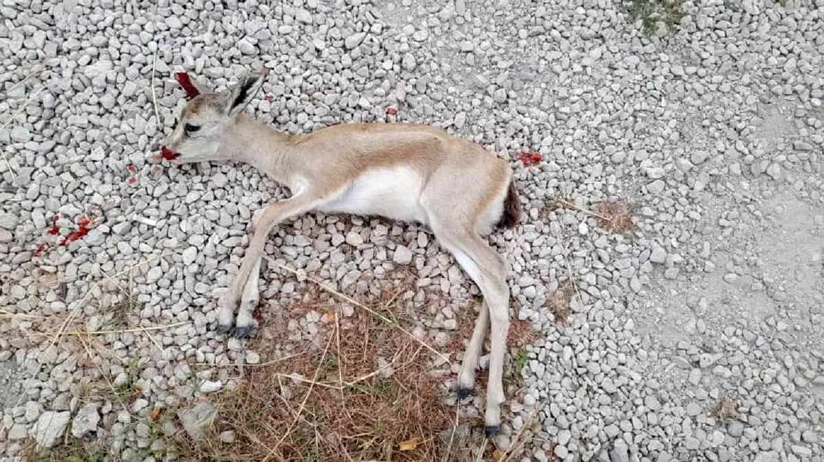 رکنا: روز گذشته مردی موتورسوار یک بچه آهو را در جزیره خارک کشت.