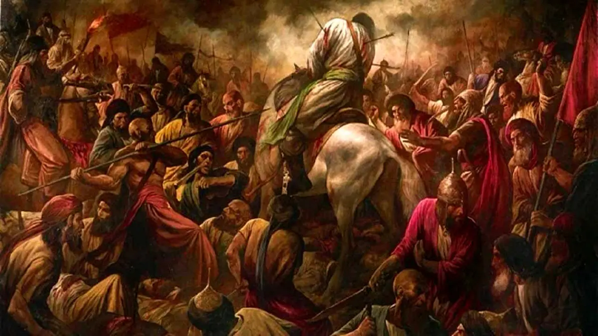 نقاشی از لحظه شهادت امام حسین(ع) در ظهر عاشورا