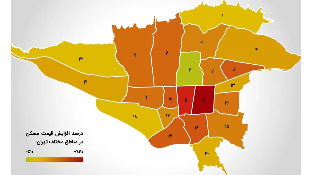 بررسی آماری نشان می دهد 12 منطقه در تهران بیش از 1.8 درصد افزایش قیمت داشته و 8 منطقه نیز زیر 1.8 درصد رشد قیمتی را در آبان ماه تجربه کرده اند . 2 منطقه نیز در محدوده میانه تغییر قیمت ثبت کرده اند.