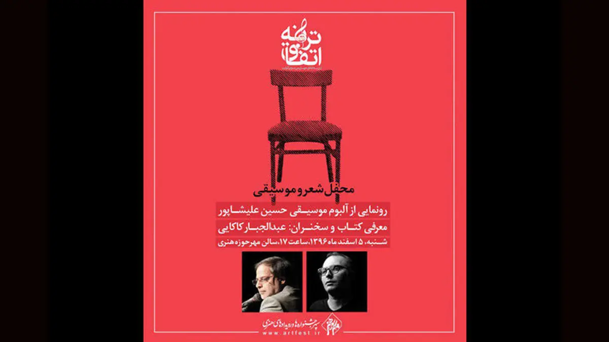 شرکت در بیست و نهمین محفل شعر و موسیقی «اتفاق ترانه» که به همت موسسه فرهنگی هنری سپهر سوره هنر Art و مرکز موسیقی در حوزه هنری برگزار می شود، برای عموم علاقه مندان آزاد و رایگان است.برای ورود به کانال تلگرام ما کلیک کنید.