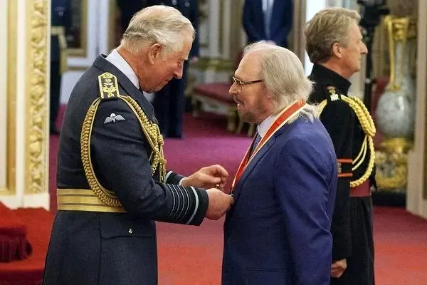 بری گیب ۷۱ ساله که با درگذشت ۲ برادرش تنها بازمانده گروه موسیقی بیجیز است و ترانههایی چون Night Fever را خلق کرده و شاید مشهورترین خواننده مرد فالستو (خواندن نتهایی بالاتر از رنج نرمال صدا) در جهان باشد، دیروز در کاخ باکینگهام مقام شوالیه را دریافت کرد.