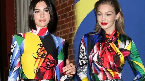 دوا لیپا به تازگی در یک مراسم با لباسی از برند ورساچه دیده شد که همین لباس را با اندکی تفاوت، 2 ماه پوش جیجی حدید در مراسم CFDA که از آن به عنوان اسکار دنیای مد یاد میشود، پوشیده بود.