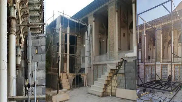 آبیار ادامه داد: روی بنا پلاستیک و پارچه کشید شد. گوشوارهها را بنا کردند که روی اسکلت فلزی است و با زمین یک متر فاصله دارد و اطراف آن را بلوک سیمانی چسباندند که از دیوار هم ۲۰ سانتیمتر فاصله دارد. کارشناسان مختلفی بازدید کردند و گفتند هیچ ضرر و آسیبی برای باغ و عمارت عفیفآباد وجود ندارد. داخل عمارت را هم که اصلا دست نزدیم.