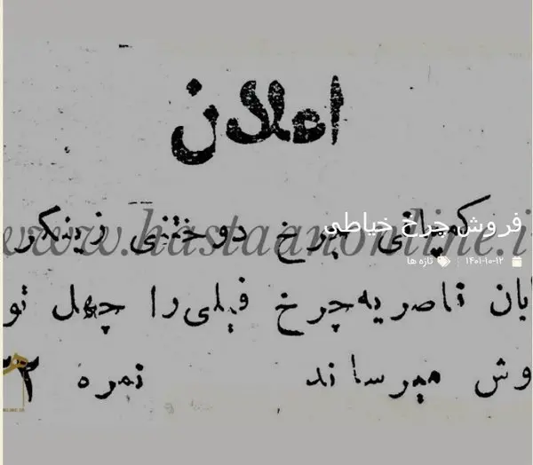 تصویر قدیمی ترین اعلان فروش چرخ خیاطی در ایران را اینجا ببینید.