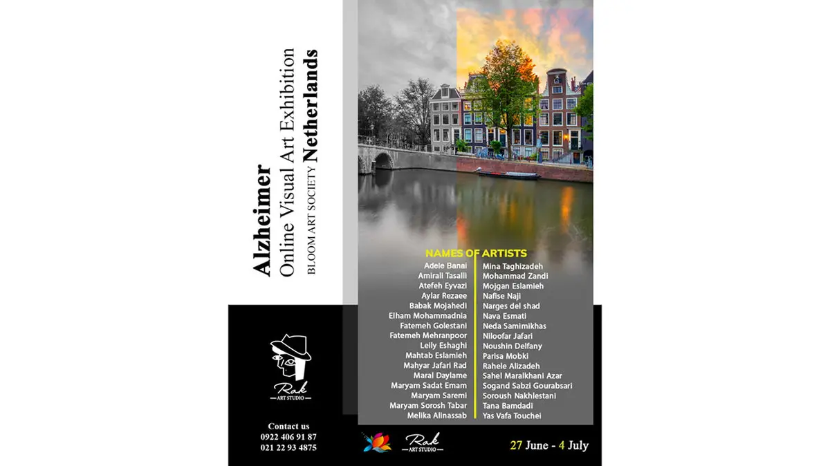 رکنا: نمایشگاه بینالمللی واقعیت مجازی هنرهای تجسمی با عنوان آلزایمر به کیوریتوری بهارک نژاد مبشر توسط رک آرت استودیو و با همکاری موسسه بلوم آرت هلند و با حضور 33 هنرمند و 65 اثر از تاریخ 7 الی 14 تیر ماه 1403 به صورت آنلاین و با استفاده از تکنولوژی واقعیت مجازی (Virtual Reality) در پلتفرم بینالمللی artsteps برگزار خواهد شد.