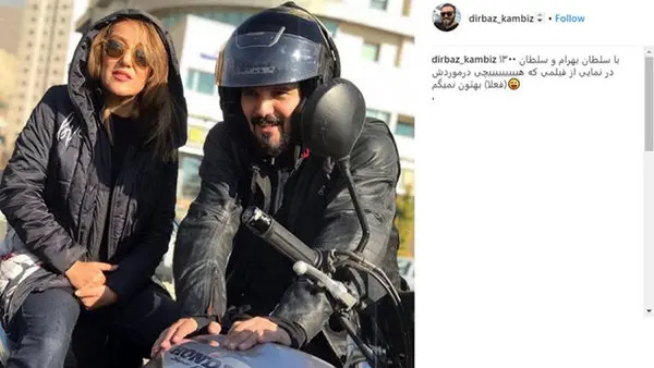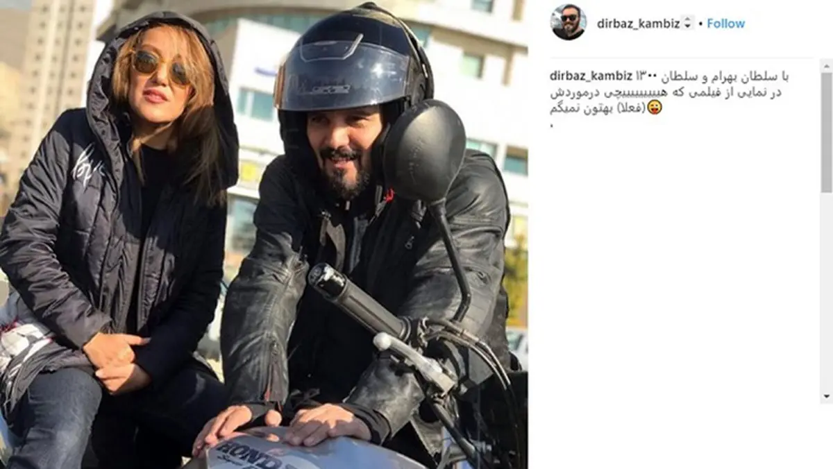 کامبیز دیرباز، تصویری از خود و پانتهآ بهرام را در حالیکه سوار بر موتور است، در اینستاگرام Instagram منتشر کرد و نوشت: "با سلطان بهرام و سلطان ۱۳۰۰ در نمایی از فیلمی که هیچی درموردش (فعلا) بهتون نمیگم."