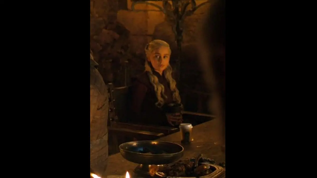 به گزارش گروه ترجمه رکنا، تصویری از کاراکتر دنریس تارگرین در حالیکه یک لیوان قهوه استارباکس روی میزش قرار دارد در تمام فضای مجازی پخش شد که همه از گاف عجیب در طراحی صحنه سریال در فضای مجازی تعریف کردند.