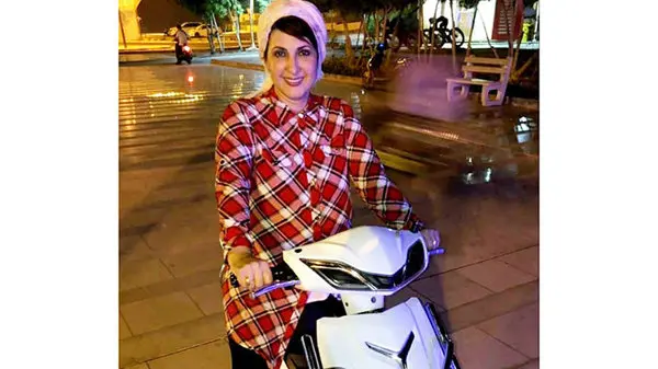 رکنا: تصویری از فاطمه گودرزی در حال موتورسواری را مشاهده می کنید.