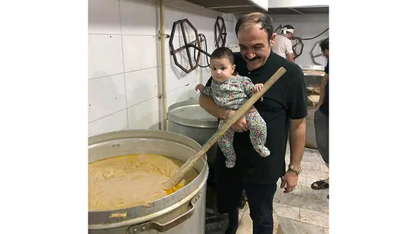 مهران غفوریان همراه دخترش پای دیگ نذری + تصویر