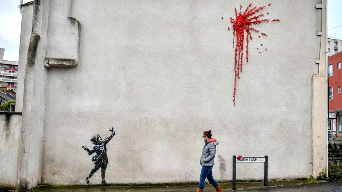یک نقاشی دیواری تازه که گمان میرود کار جدید بنکسی، هنرمند ناشناس بریتانیایی باشد، بر دیوار خانهای در منطقه بارتون هیل شهر بریستول انگلیس ظاهر شده است.