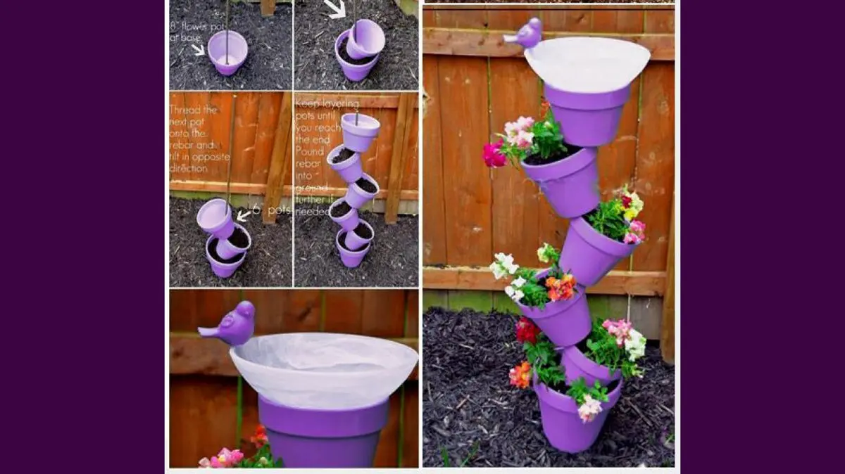 یا با استفاده از چند گلدان و یک میله، گلدان های درهم ساخته و حیاط خود را خلاقانه تزئین