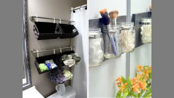 میتوانید لوازم آرایشی و بهداشتی را در چند ظرف شیشهای قرار دهید.