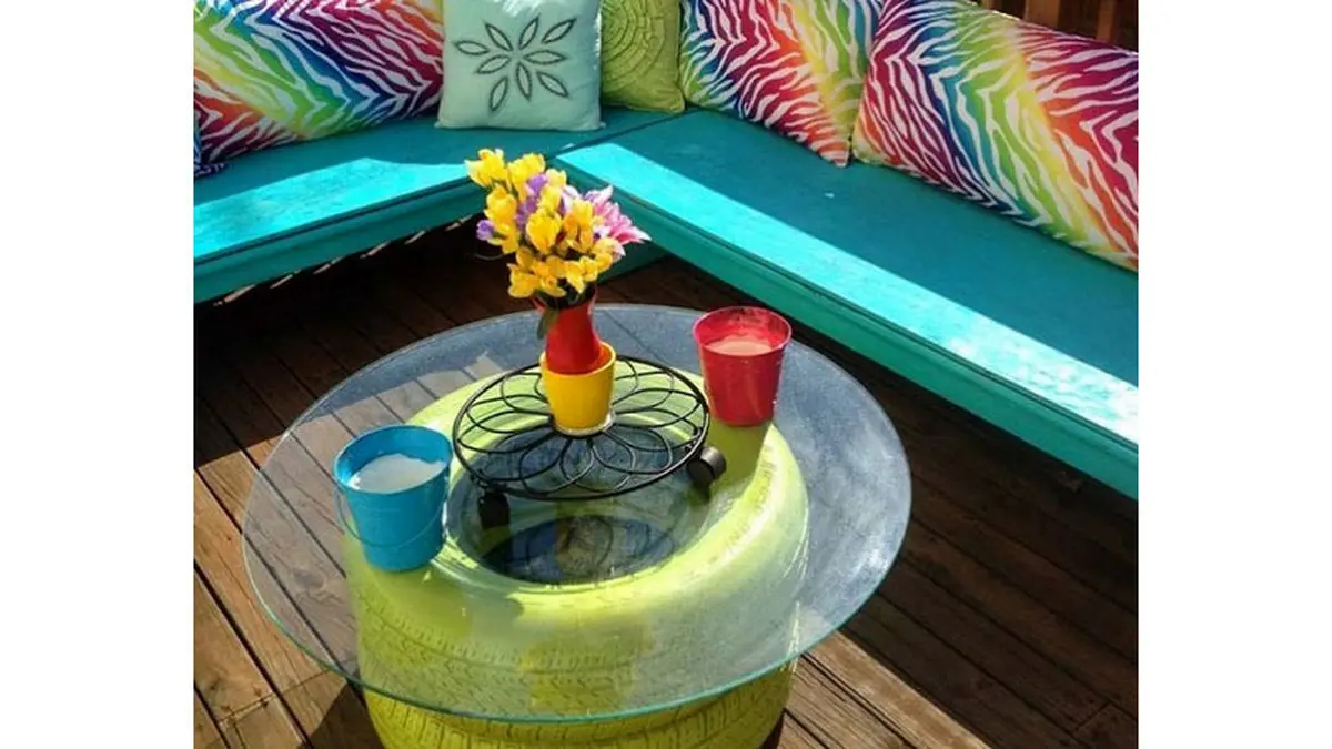 4- ساخت میز با چند لاستیک ماشین و شیشه