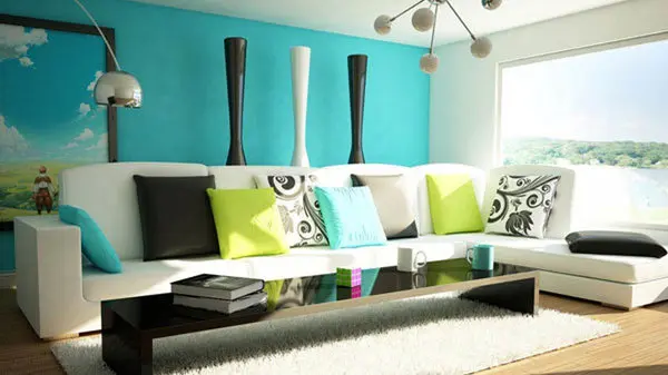 تا میتوانید از رنگهایی با تُنهای ساده استفاده کنید تا القاکننده حس آرامش بیشتری باشند. بهترین رنگ برای اتاق نشیمن سفید، هلویی، کرم بژ، یاس، بنفش و نارنجی بسیار ملایم است. برای زندهتر شدن اتاق نشیمن بهتر است که دیوارها را با تابلوها و مجموعههای هنری مورد علاقه خود بپوشانید. تابلوها را به هیچوجه در ارتفاع بلند آویزان نکنید و ارتفاع مناسب این کار را رعایت کنید. استفاده از یک قفسه کتاب کوچک اتاق نشیمن را واقعیتر جلوه میدهد.