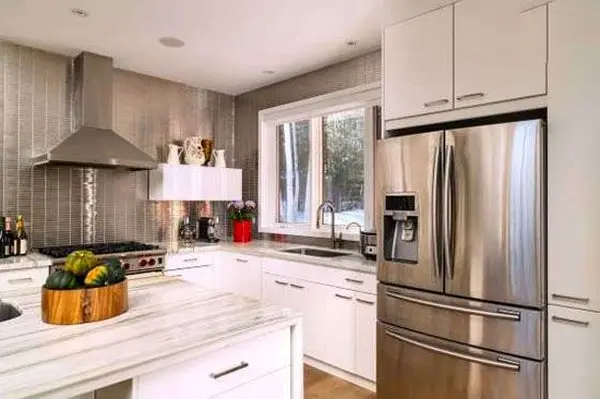 رنگ های روشن نور بیشتری را انعکاس می دهند و باعث می شوند تا کل فضای آشپزخانه بزرگ تر و روشن تر به نظر برسد. دیوارها و کابینت های سفید چشم های شما را فریب می دهند، به طوری که آشپزخانه بزرگ تر – و گران تر – از چیزی که هست برای شما به نظر می رسد.