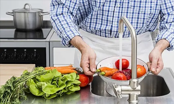 شستشوی صحیح هر گونه آلودگی منتقله از راه خاک را از بین می برد بنابراین بسیار مهم است که هنگام شستن سبزیجات آنها را زیر شیر آب شستشو داده و به یک ظرف تازه انتقال دهید. این کار باید چند بار تکرار شود.