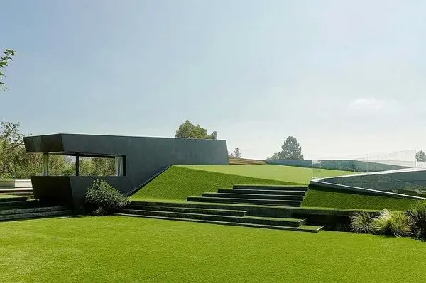 رکنا: طراحان در کالیفرنیا ویلایی ساختند که پوشش سبز سقف به زمین متصل می شود.