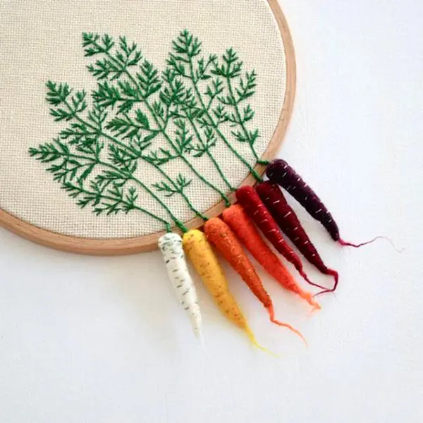 هنرمند آلمانی اهل مونیخ با خلاقیت خود سبکی جدید از گلدوزی را به وجود آورد . «وسلکا بولکان» با استفاده از هنر گلدوزی نوین خود، سبزیجات نمدی می سازد که از حلقه گلدوزی آویزان هستند. هر قطعه ترکیبی از برگهای گلدوزی شده است که به هویج، چغندر، سیر و دیگر ریشه های نمدی متصل شده است. در ادامه تصاویری از این گلدوزهای جالب را مشاهده خواهید کرد.