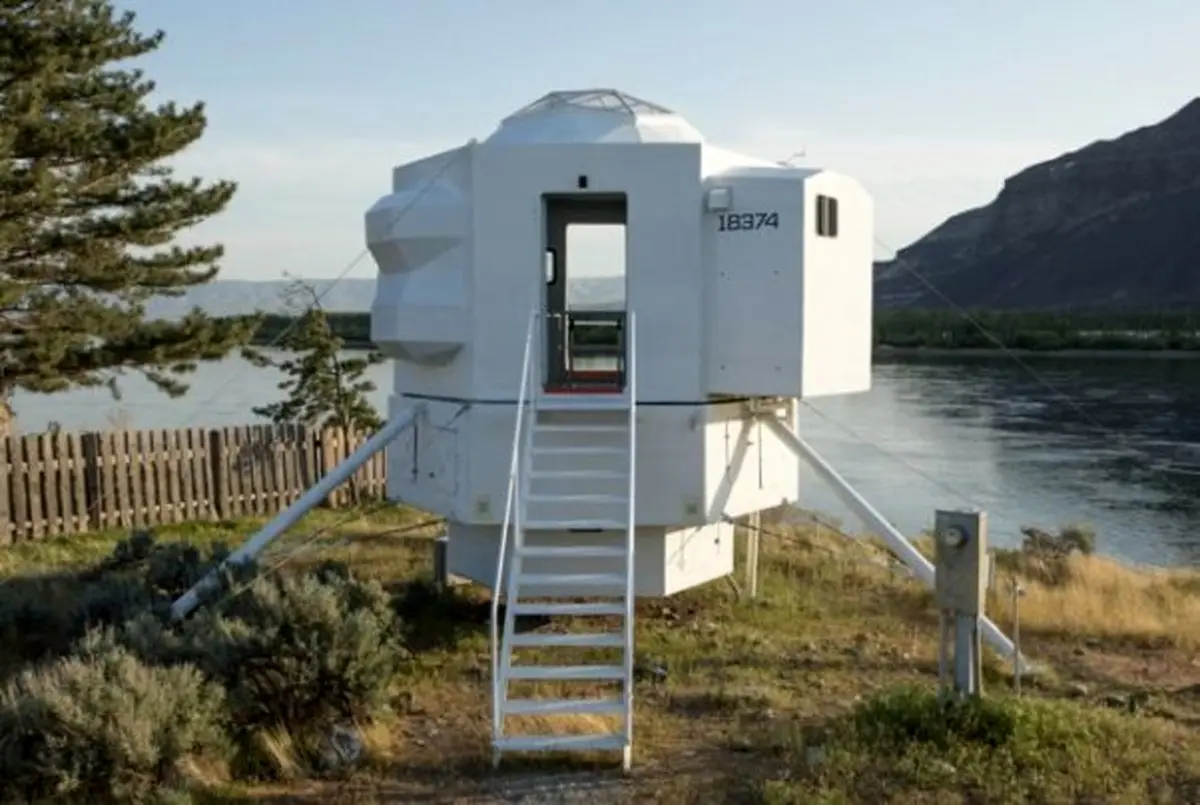 این فضاپیمای کوچک بسیار راحت است. این خانه با وزن ۱۳۶۰ کیلوگرم در ساحل رودخانه کلمبیا قرار دارد و حافظ محیط زیست است.