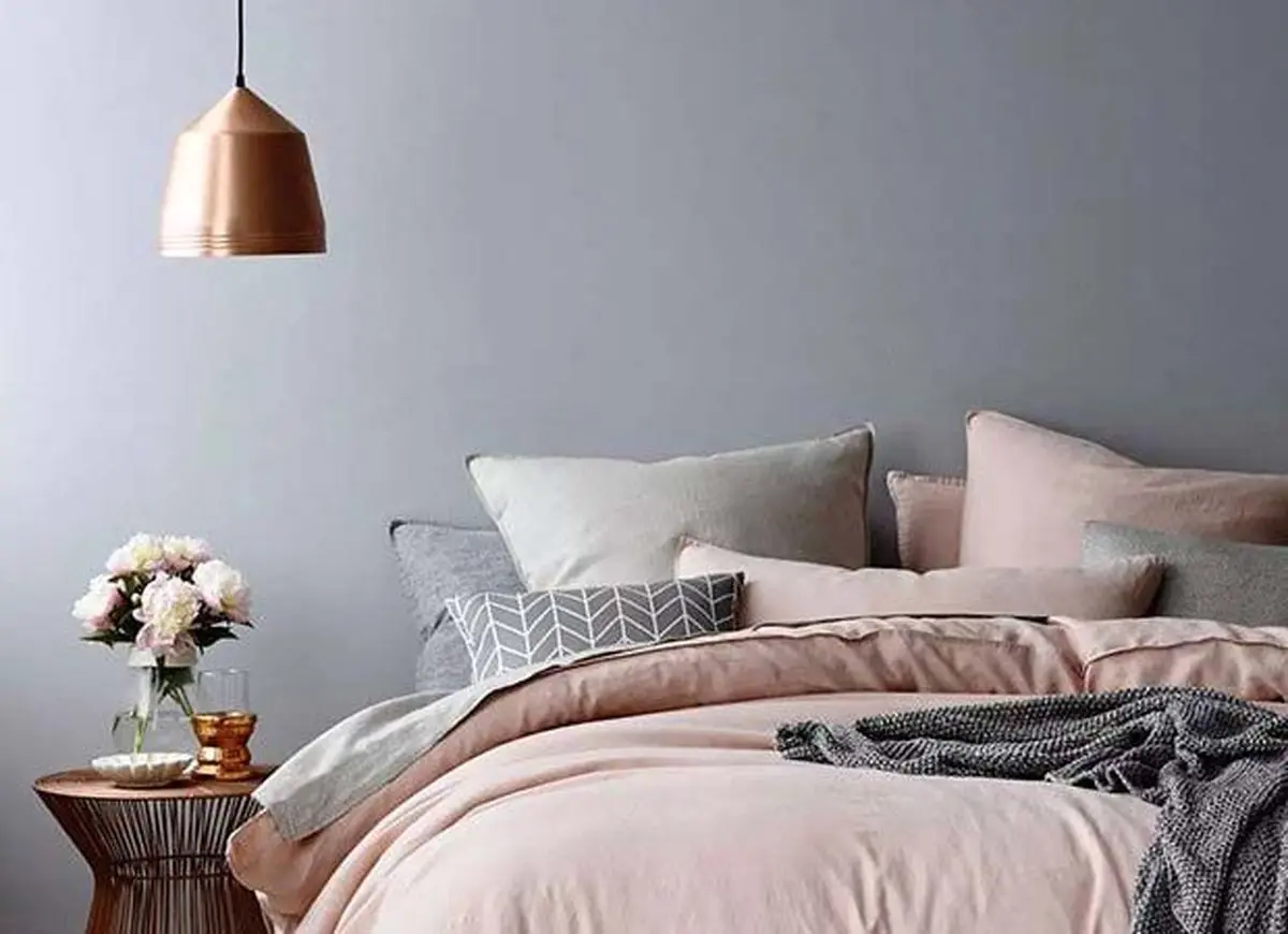 راهنمای طراحی: همکاری سایه ها و طیف های متفاوتی از خاکستری با رنگ هایی به روز مانند صورتی میتواند باعث درخشندگی و نمایانی بیشتری در رنگ های رزگلد استفاده شده در اتاق شود.