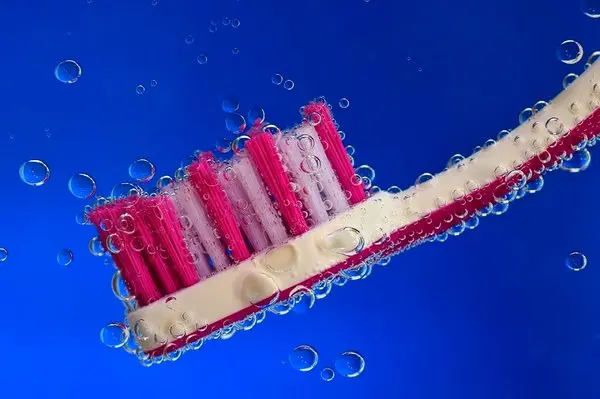 2 – پس از هر بار مسواک زدن حداقل یک یا دو دقیقه مسواکتان را زیر شیر آب نگه داشته و آبکشی کنید. سپس آن را با محلول دهان شویه قوی بشویید. اما مطمئن شوید که پس از خارج کردن مسواک از محلول دهان شویه آن را به خوبی آبکشی کرده باشید تا چیزی از محلول روی آن نماند.
