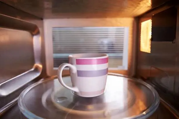 یک فنجان آب بزرگ بردارید و آن را در کاسه مخصوص مایکروفر قرار دهید.